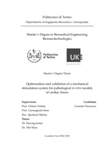 Optimization and validation of a mechanical stimulation system for pathological in vitro models of cardiac tissue.