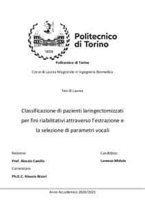 Classificazione di pazienti laringectomizzati per fini riabilitativi attraverso l’estrazione e la selezione di parametri vocali = Classification of laryngectomized patients for rehabilitation purposes by extraction and selection of vocal parameters.