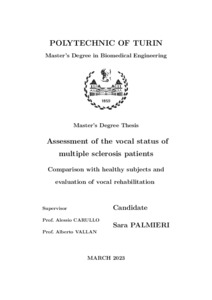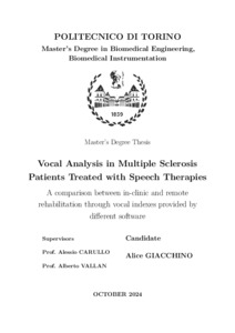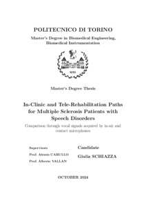 Riabilitazione logopedica in presenza e a distanza per pazienti affetti da sclerosi multipla - Confronto attraverso segnali vocali acquisiti con microfono a contatto = Speech therapy rehabilitation in-person and remotely for patients with multiple sclerosis – Comparison through vocal signals acquired with a contact microphone.