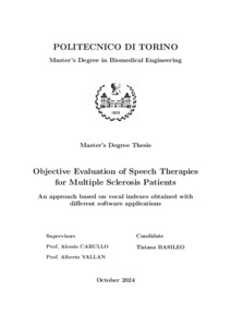 Objective evaluation of speech therapies for multiple sclerosis patients - An approach based on vocal indexes obtained with different software applications.