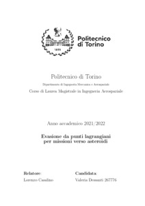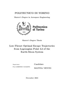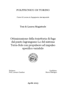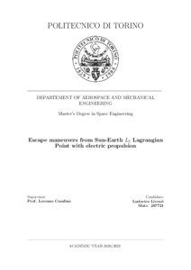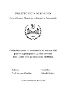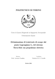 Ottimizzazione di traiettorie di escape dal punto Lagrangiano L1 del sistema Terra-Sole con propulsione elettrica = Optimization of escape trajectories from Lagrangian Point L1 of the Sun-Earth system using electric propulsion.