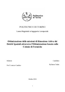 Ottimizzazione di traiettorie satellitari per la rimozione di detriti spaziali usando l'ottimizzazione basata sulla colonia di formiche = Optimization of Satellite Trajectories for Space Debris Removal Using Ant Colony Algorithms.