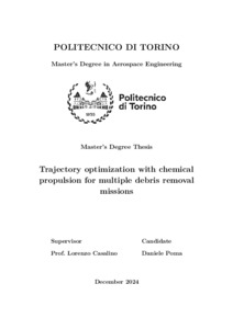 Trajectory optimization with chemical propulsion for multiple debris removal missions.
