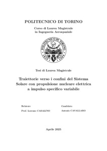 Traiettorie verso i confini del sistema solare con propulsione nucleare elettrica a impulso specifico variabile = Trajectories to the Solar System‘s edges with variable specific impulse nuclear electric propulsion.