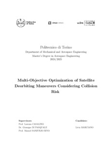 Multi-Objective Optimization of Satellite Deorbiting Maneuvers Considering Collision Risk.