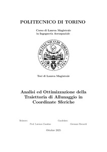 Analisi ed Ottimizzazione della Traiettoria di Allunaggio in Coordinate Sferiche = Analysis and Optimization of Lunar Landing Trajectory in Spherical Coordinates.