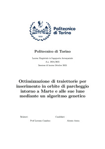 Ottimizzazione di traiettorie per inserimento in orbite di parcheggio intorno a Marte e alle sue lune mediante un algoritmo genetico = Optimization of Trajectories for Insertion into Parking Orbits around Mars and its Moons using a Genetic Algorithm.