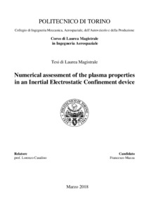 Numerical assessment of the plasma properties in an Inertial Electrostatic Confinement device.