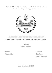 ANALISI DEI CAMBIAMENTI NELLA SUPPLY CHAIN CON L’INTRODUZIONE DELL’ADDITIVE MANUFACTURING = Analysis of Changes in the Supply Chain with the Introduction of Additive Manufacturing.