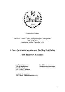Un approccio a Deep-Q Network per la programmazione di job shop con risorse di trasporto = A Deep Q-Network Approach to Job Shop Scheduling with Transport Resources.