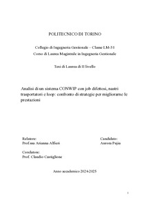 Analisi di un sistema CONWIP con job difettosi, nastri trasportatori e loop: confronto di strategie per migliorarne le prestazioni = Analysis of a CONWIP production system with defective jobs, conveyors, and loops: comparison of strategies to improve its performance.