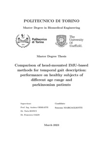 Rel. Andrea Cereatti, Diletta Balta, Paolo Tasca. Politecnico di Torino, Corso di laurea magistrale in Ingegneria Biomedica, 2024