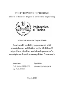 Real world mobility assessment with smartphone: validation with Mobilise-D algorithm pipeline and development of a smartphone location recognition framework.