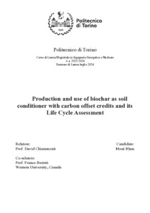 Production and use of biochar as soil conditioner with carbon offset credits and its Life Cycle Assessment.