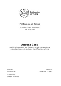 ANCORA CASA. Modelli e linee giuda per l’housing sociale torinese come proposta di supporto sociale e riqualificazione urbana = ANCORA CASA. Models and guidelines for social housing in Turin as a proposal for social support and urban regeneration.