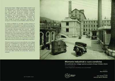 Memorie industriali e cura condivisa Un confronto tra i villaggi operai Leumann, Crespi d’Adda e Schio = Industrial memories and shared care A comparison of the workers' villages of Leumann, Crespi d'Adda, and Schio.