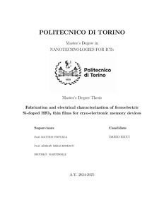 Fabrication and electrical characterization of ferroelectric Si-doped HfO2 thin films for cryo-electronic memory devices.