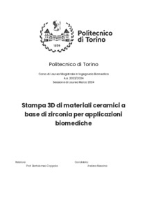 Stampa 3D di materiali ceramici a base di zirconia per applicazioni biomedicali = 3D printing of ceramic materials based on zirconia for biomedical applications.