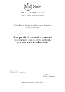 Stampa 3D di ceramici strutturati bioinspired: sintesi delle polveri, processo e caratterizzazion = 3D printing of bioinspired textured ceramics: powders synthesis, processing and characterization.