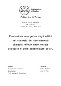 Prestazione energetica degli edifici nel contesto dei cambiamenti climatici: effetto delle vetrate avanzate = Buildings's energy performance in the context of climate change: effect of advanced glazing.