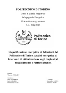 Riqualificazione energetica di fabbricati del Politecnico di Torino. Analisi energetica di interventi di ottimizzazione sugli impianti di riscaldamento e raffrescamento = Energy refurbishment of buildings at Politecnico di Torino. Energy analysis of optimisation interventions on heating and cooling systems.
