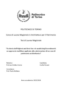 Il criterio dell’Highest and Best Use e le analisi degli investimenti: un approccio multifase applicato alla valorizzazione di un caso di patrimonio architettonico = The Highest and Best Use criterion and investment analyses: a multi-phase approach applied to the valorisation of a case of architectural heritage.