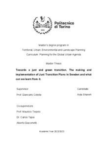 Verso una transizione giusta e verde. Realizzazione e attuazione di Piani per la Transizione Giusta in Svezia e cosa si può imparare da essi = Towards a just and green transition. The making and implementation of Just Transition Plans in Sweden and what can we learn from it.