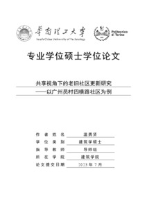 Ricerca sulla rigenerazione della vecchia comunità dalla prospettiva della condivisione - Un caso di studio della comunità di Yuancun Siheng Road a Guangzhou = Research on the Old Community Regeneration from the Sharing Perspective——A Case Study of Yuancun Siheng Road Community in Guangzhou.