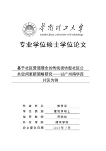 The Renewal Strategy of Public Space in Traditional Kaifong Community Based on the Concept of Community Building----A Case Study of Nanhuaxi Area in Guangzhou.