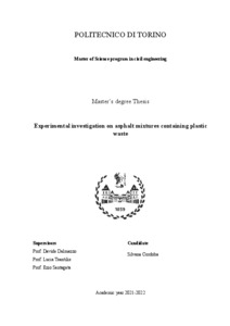 Rel. Orazio Baglieri, Leonardo Urbano, Ezio Santagata, Davide Dalmazzo. Politecnico di Torino, Corso di laurea magistrale in Ingegneria Civile, 2021