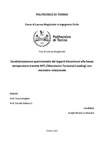 Caratterizzazione sperimentale dei leganti bituminosi alle basse temperature tramite prova MTL e correlazione con le proprietà delle miscel = Experimental Characterization of Bituminous Binders at Low Temperatures through MTL Testing and Correlation with Mixture Properties.