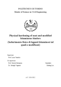 Indurimento fisico di leganti bituminosi tal quali e modificati = Physical hardening of neat and modified bituminous binders.
