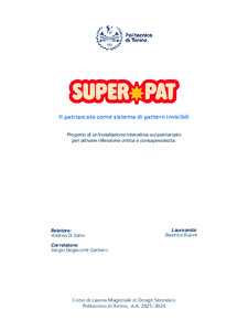 SUPER PAT: Il patriarcato come sistema di pattern invisibili. Progetto di un'installazione interattiva sul patriarcato per attivare riflessione critica e consapevolezza. = SUPER PAT: Patriarchy as a system of invisible patterns. Design of an interactive installation on patriarchy to stimulate critical reflection and consciousness.