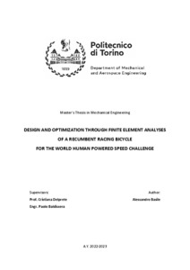 Design and Optimization through Finite Element Analyses of a Recumbent Racing Bicycle for the World Human Powered Speed Challenge.