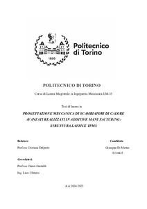 Progettazione meccanica di scambiatori di calore avanzati realizzati in Additive Manufacturing: struttura Lattice TPMS = Mechanical design of advanced heat exchangers made in Additive Manufacturing: TPMS Lattice structure.