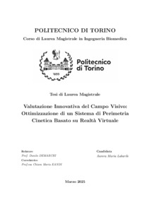 Valutazione Innovativa del Campo Visivo: Ottimizzazione di un Sistema di Perimetria Cinetica Basato su Realtà Virtuale = Innovative Assessment of the Visual Field: Optimization of a Virtual Reality-Based Kinetic Perimetry System.