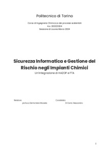 Sicurezza Informatica e Gestione del Rischio negli Impianti Chimici: Un'Integrazione di HAZOP e FTA = Cybersecurity and Risk Management in Chemical Plants: Integrating HAZOP and FTA.