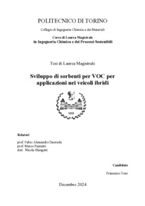 Sviluppo di sorbenti per VOC per applicazioni nei veicoli ibridi = Development of VOCs sorbents for hybrid vehicles applications.
