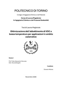 Ottimizzazione dell'abbattimento di VOC a bassa temperatura per applicazioni in ambito automotive = Optimizing low-temperature VOC abatement for automotive applications.
