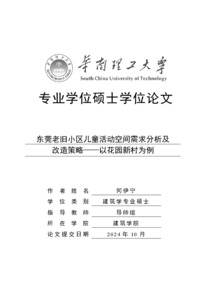 Demand Analysis and Renovation Strategies of Children's Activity Spaces in Old Residential Complex in Dongguan——Taking Huayuan Village as an Example.