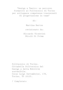 Design e Teatro: un percorso formativo al Politecnico di Torino per sviluppare competenze trasversali di progettazione in team = Design and Theatre: a training course at the Polytechnic University of Turin to develop soft skills for designing in team.