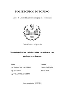 Braccio robotico collaborativo ridondante con settimo asse lineare = Redundant collaborative robotic arm with a linear seventh axis.