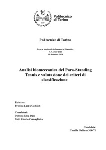 Analisi biomeccanica del para-standing tennis e valutazione dei criteri di classificazione   = Biomechanical analysis of para-standing tennis and evaluation of classification criteria  .