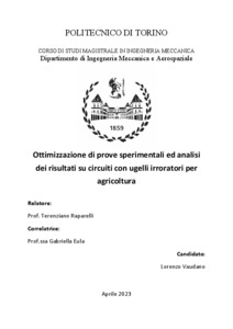 Ottimizzazione di prove sperimentali ed analisi dei risultati su circuiti con ugelli irroratori per agricoltura = Optimisation of experimental tests and analysis of results on circuits with agricultural spray nozzles.