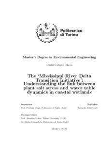 The ‘Mississippi River Delta Transition Initiative’: Understanding the link between plant salt stress and water table dynamics in coastal wetlands.