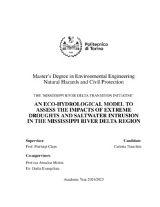 The ‘Mississippi River Delta Transition Initiative’: An Eco-hydrological model to assess the impacts of extreme droughts and salt-water intrusion in the Mississippi River Delta Region.