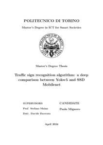 Traffic sign recognition algorithm: a deep comparison between Yolov5 and SSD Mobilenet.