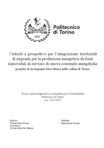 Criticità e prospettive per l'integrazione territoriale di impianti di produzione energetica da fonti rinnovabili al servizio di nuove comunità energetiche: progetto di un impianto fotovoltaico nella collina di Torino = Critical issues and prospects for territorial integration of renewable energy production systems in support of emerging energy communities: project for a photovoltaic system on the hills of Turin.