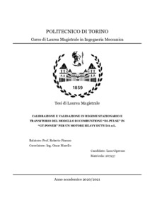 Calibrazione e validazione in regime stazionario e transitorio del modello di combustione 'DI-Pulse' in 'GT-POWER' per un motore heavy duty da 11 litri = Calibration and steady and transient validation of the 'DI-Pulse' combustion model in 'GT-POWER' for a heavy duty 11 liter engine.