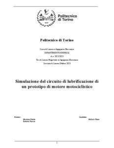 Simulazione del circuito di lubrificazione di un prototipo di motore motociclistico = Simulation of the lubrication circuit of a prototype motorbike engine.